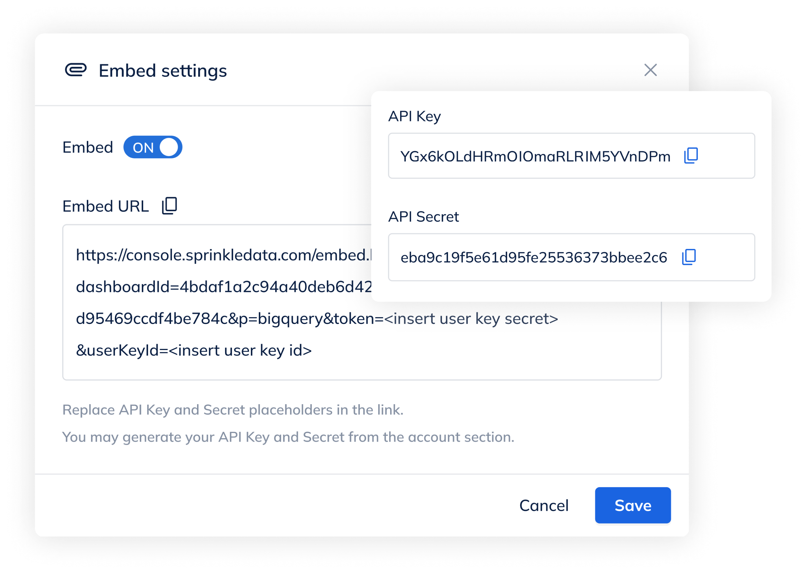 Yes, but with caution! The level of data users see in the embedded dashboard depends on the API key and secret associated with the link. Ensure you only share the link with relevant users.