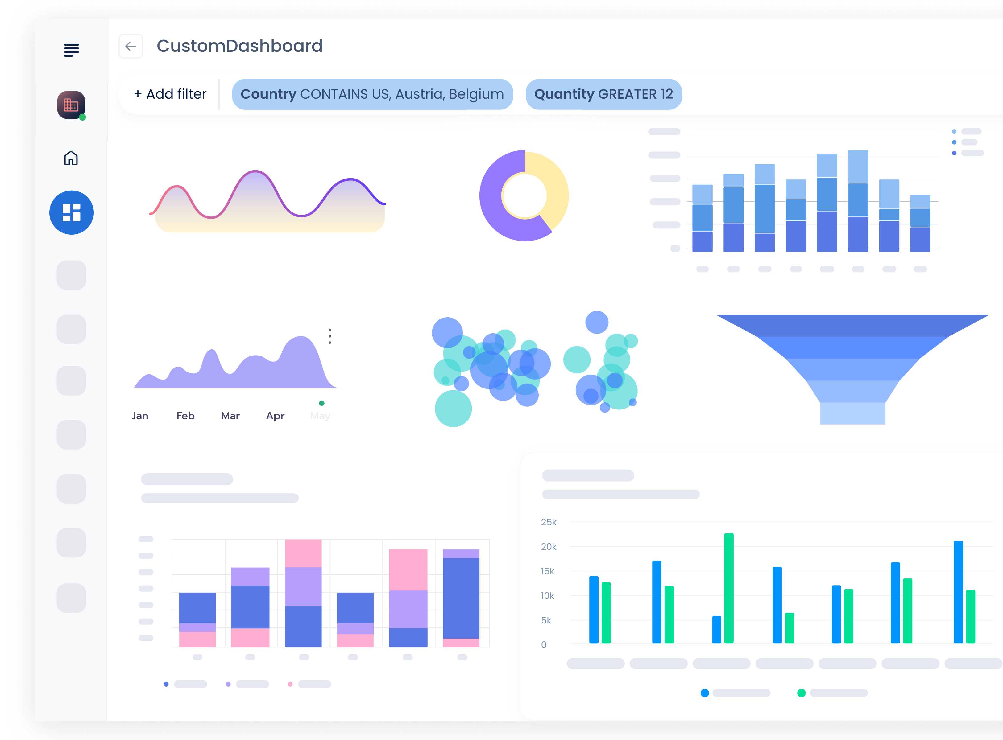 Sprinkle offers a user-friendly interface for customising dashboards.You can drag-and-drop different reports and visualisations, arrange them to your preference, and apply filters to focus on specific aspects of your data.